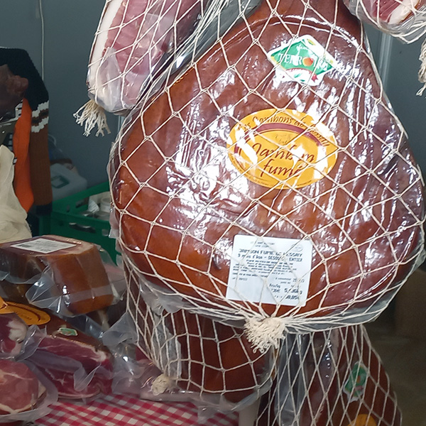 Le produit phare de la maison : le jambon fumé de Lessay, affiné pendant 9 mois, séduit par sa texture fondante et ses arômes subtils. Toute la gamme – jambon fumé, bacon, filet mignon, magret de canard, bœuf fumé, saucisses sèches et verrines – est conçue pour se conserver à température ambiante, idéale pour la dégustation et la découverte.